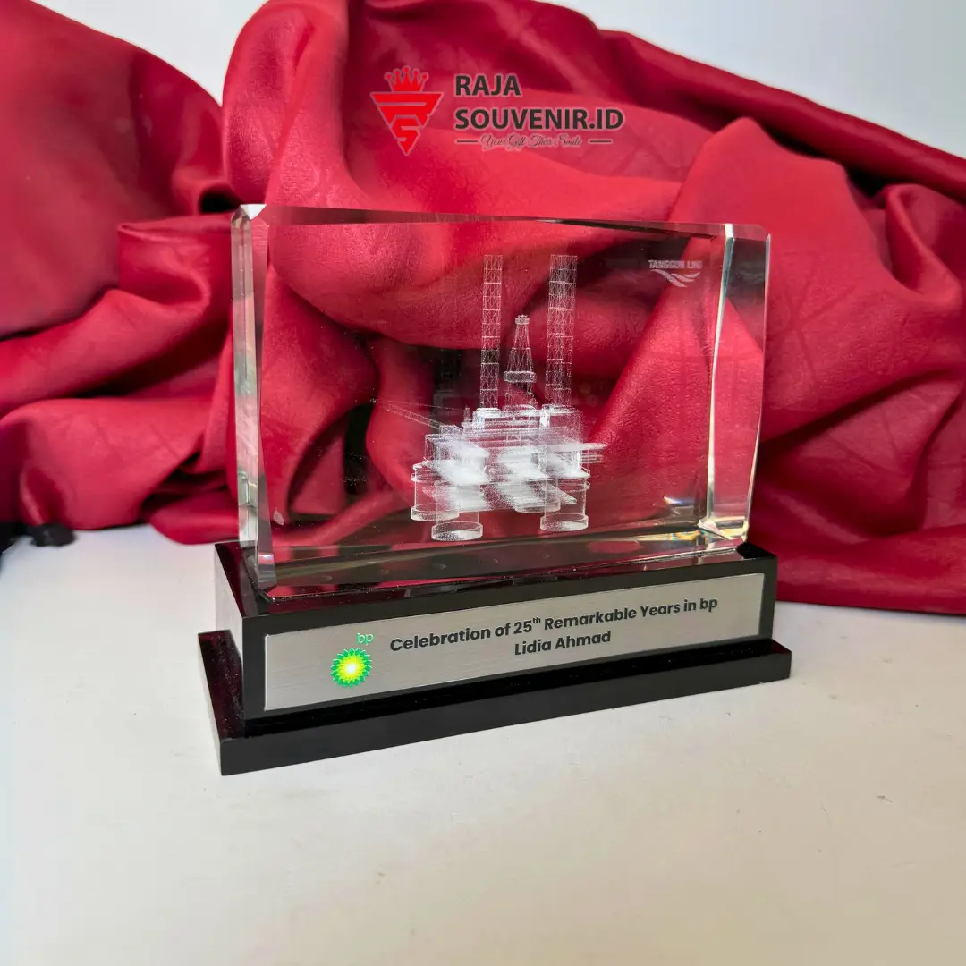 Plakat Kristal Bentuk Balok Kilang Offshore diproduksi presisi dengan finishing rapi.